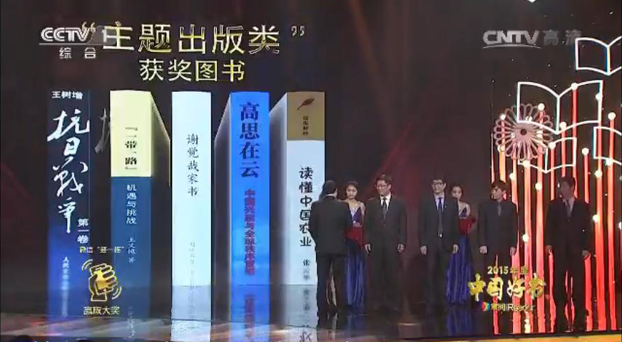 “2015中国好书”由中国图书评论学会主办,通过评测程序,由权威的专家学者队伍和网络票选共同对2015出版的40多万种新书进行层层筛选,从思想学术深度、文化品质、阅读价值、社会影响等多个维度综合评测,最终推选出年度“中国好书”,涵盖主题出版、科普生活、文学艺术、人文社科、少儿五大类别和四种年度荣誉图书。《“一带一路”:机遇与挑战》、《高思在云》荣获主题出版类“2015中国好书”,《抗战家书》获评“2015中国好书”年度荣誉图书。
